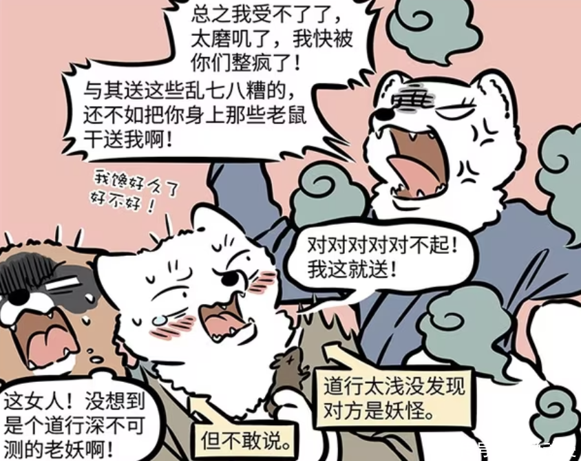 九月妈妈之所以会主动出击,那是因为年爸爸太磨叽,她都快被整疯了。九月妈妈不想要那些乱七八糟的东西,还不如将身上的老鼠干都送给她。年爸爸被吓出原形,表示马上就会送老鼠干。黄大哥也变成黄鼠狼,他根本没想到九月妈妈是道行深不可测的老妖怪,不过他可不敢直接这么说。